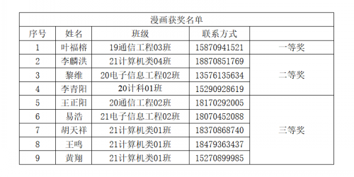 本次比赛共评选出一等奖1名,二等奖2名,三等奖6名。活动引导同学们进一步认识自我、探索自我,从漫画中汲取温暖与力量,形成理性平和、乐观向上的人生态度,营造了健康积极的心理氛围。(文/张荣 郑子烨 图/王鸣)