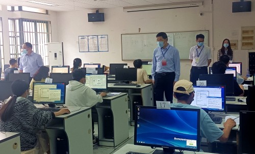 2022年5月28日至29日,2022年上半年全国计算机等级考试(NCRE)乐鱼网页版考点顺利举行。我校800余名考生参加考试。学校高度重视此次考试,校长汪胜前、副校长陆伟锋、教务处负责人亲临考场检查指导工作。南昌市考试院派出巡考组在现场进行了巡考。