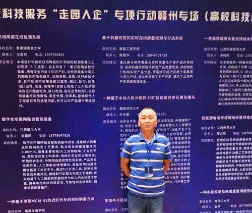 7月8日,由省教育厅、省工信厅、省科技厅、赣州市人民政府主办,高校科技服务“走园入企”专项行动赣州专场活动举行。我校乐鱼(中国)官方教师陈根华博士携项目《基于机器视觉的实时在线质量检测与分选系统》参加活动。该项目入选专项行动“高校科技成果展示墙”,得到展示和推介。