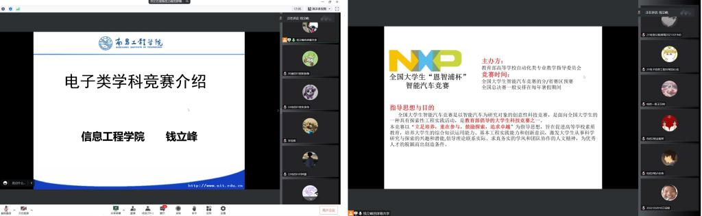 钱立峰老师是2019年度“新时代赣鄱先锋”、 第二批江西省“新时代学生心中的好老师”。他以《电子类学科竞赛介绍》为题,通过介绍学科竞赛的特点和类别,整合课外实践,鼓励同学们通过参与不同的学科竞赛激发自己的专业学习兴趣,理论联系实际,提高自身创新精神和实践能力。