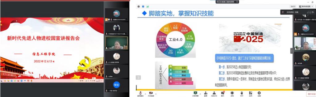 为深入学习贯彻党的二十大精神,激发广大青年学生“强国有我”的报国之志,2022年12月13日,乐鱼(中国)官方分别邀请了王颖教授和钱立峰老师,举办了两场线上“新时代先进人物进校园” 专题宣讲报告会。学院学生党员、入党积极分子和各班学生代表共200余人参加。