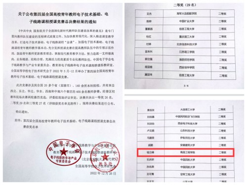 近日,从中国电子学会传来消息,我校乐鱼(中国)官方教师钱立峰在第四届全国高校青年教师电子技术基础、电子线路课程授课竞赛总决赛中获得二等奖。(文