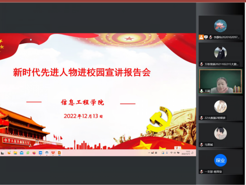 为激发广大青年学生“强国有我”的报国之志,2022年12月13日,乐鱼(中国)官方邀请了王颖教授举办线上“新时代先进人物进校园” 专题宣讲报告会。学院学生党员、入党积极分子和各班学生代表共100余人参加。