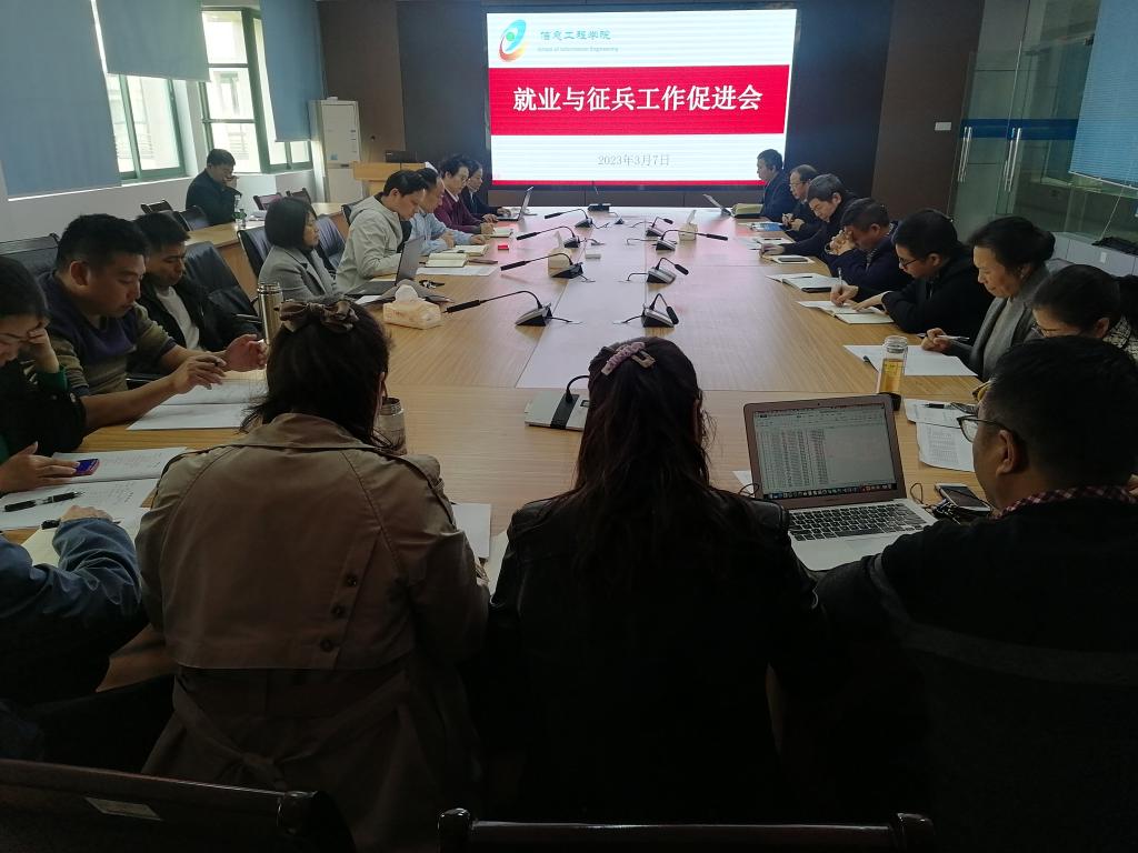 为进一步推进2023届毕业生就业与征兵工作,落实学校征兵工作会议精神。3月7日下午,乐鱼(中国)官方在信工楼B204召开2023届毕业生就业与征兵工作促进会。学院领导班子成员、教研室主任、专业负责人、学生党支部书记和2023届毕业班班主任参加会议,会议由学院党委副书记马俊主持。